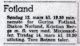 | Familien till Gurina och Gabriel Fotland. Bakre raden från vänster: Johannes Fotland, Gunnar Fotland, Gabriel Fotland, Anna Fotland, Gunvor Fotland och Bergit Fotland. Främre från vänster: Per Fotland, Ingrid Fotland, Gabriel Fotland, Gurina Fotland med Maria Fotland på knäet, Marta Maria Fotland, Kristoffer Fotland.